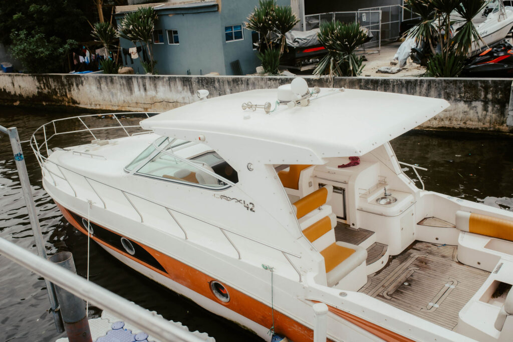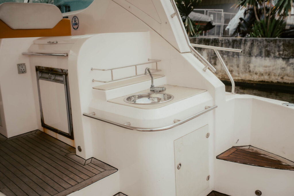 Relax in the open seating area, enjoy music with the onboard sound system, and take in the views from the elevated deck. Equipped with a restroom, washing sink, and reliable inboard engine, this vessel is built for both fun and function.