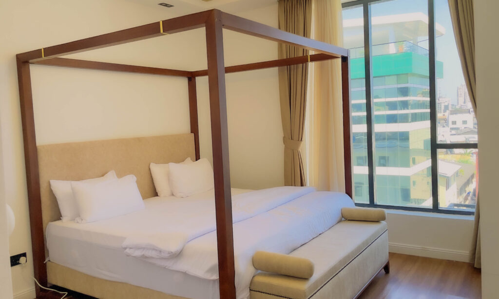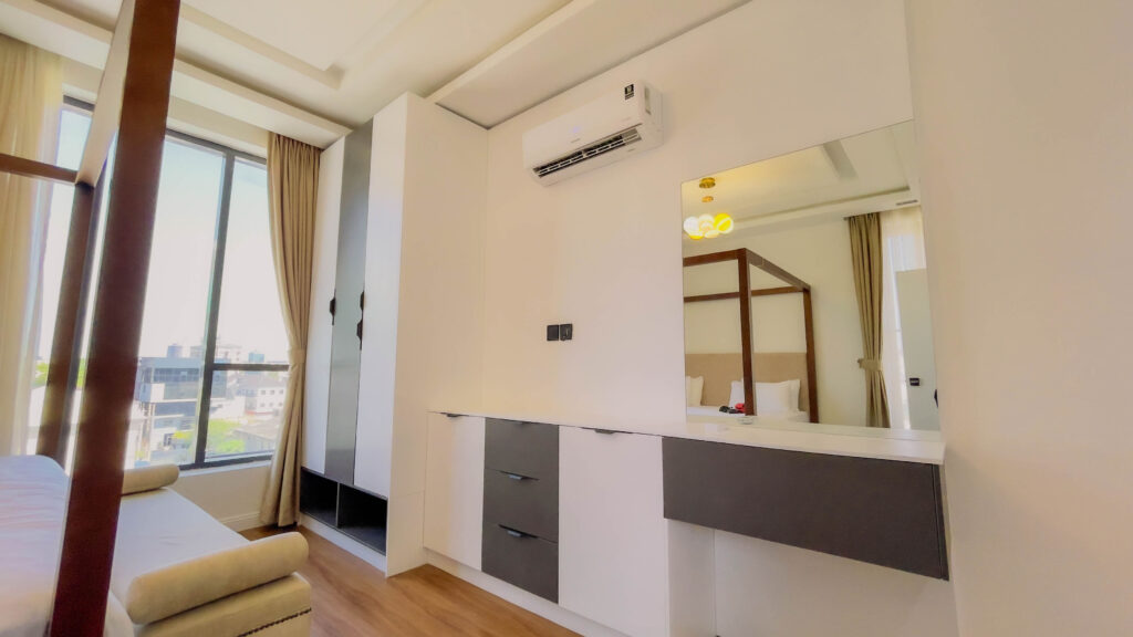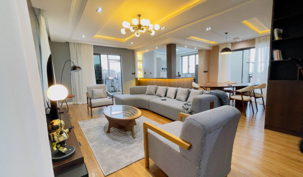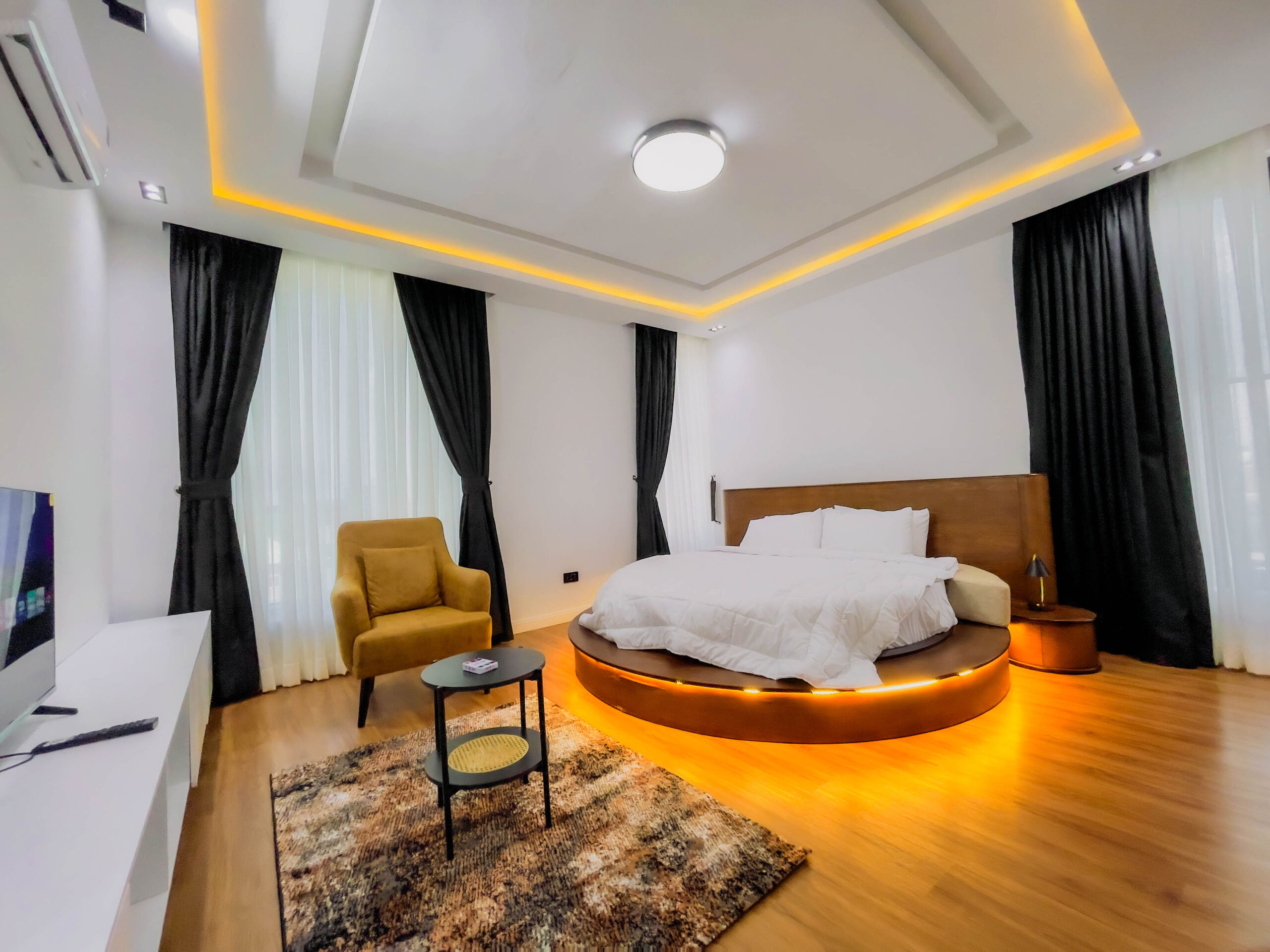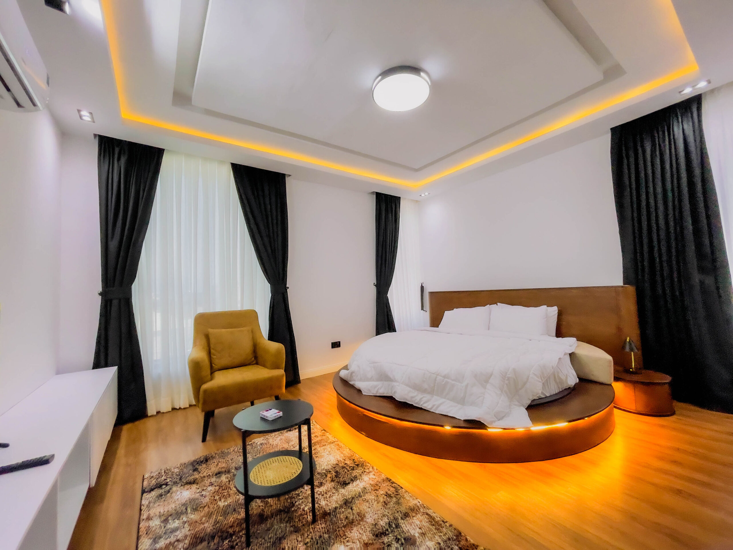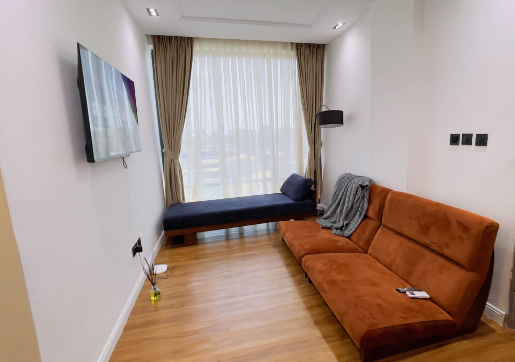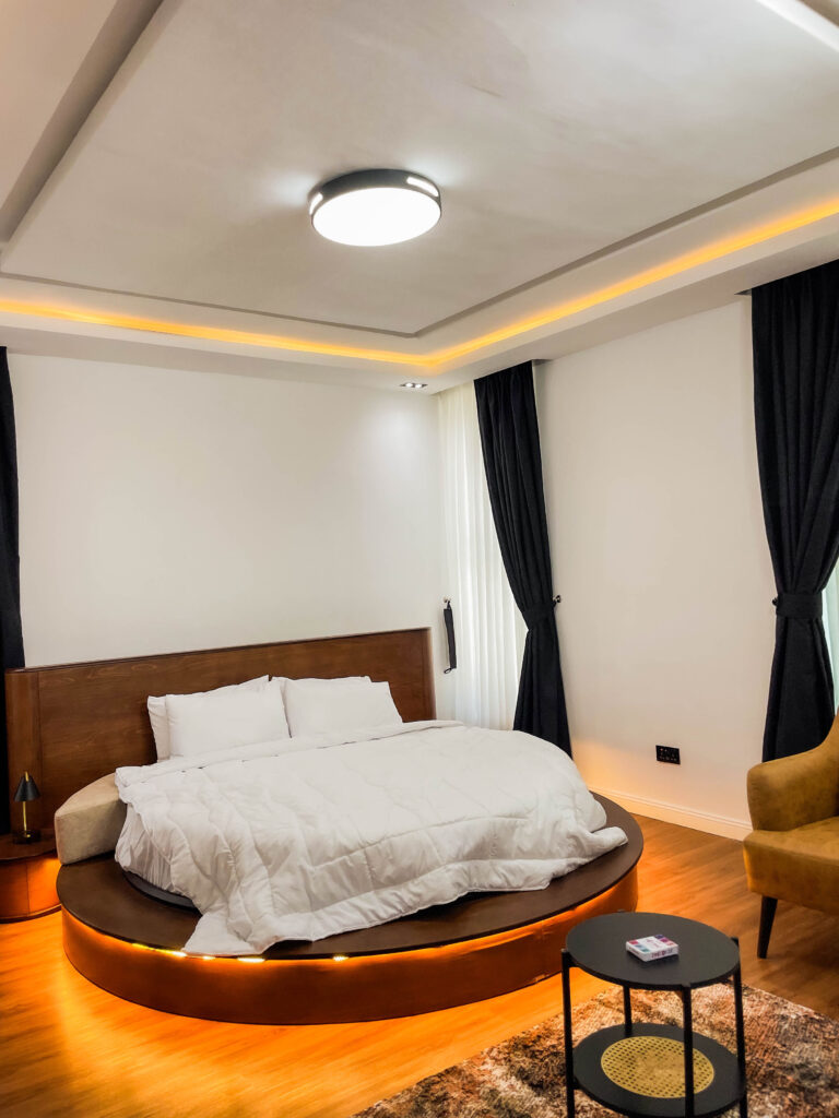 In the heart of old ikoyi, this premium luxury apartment, boasts of stunning finishes and art display, and aesthetics pleasing to the eyes. With High-speed WiFi, Smart TVs in all rooms, a lounge with an HD display fully equipped kitchen: microwave, toaster, kettle, cutlery, tableware - round spinning bed, washing machine & dryer, central water heating 24/7 electricity, clean water, housekeeping service
