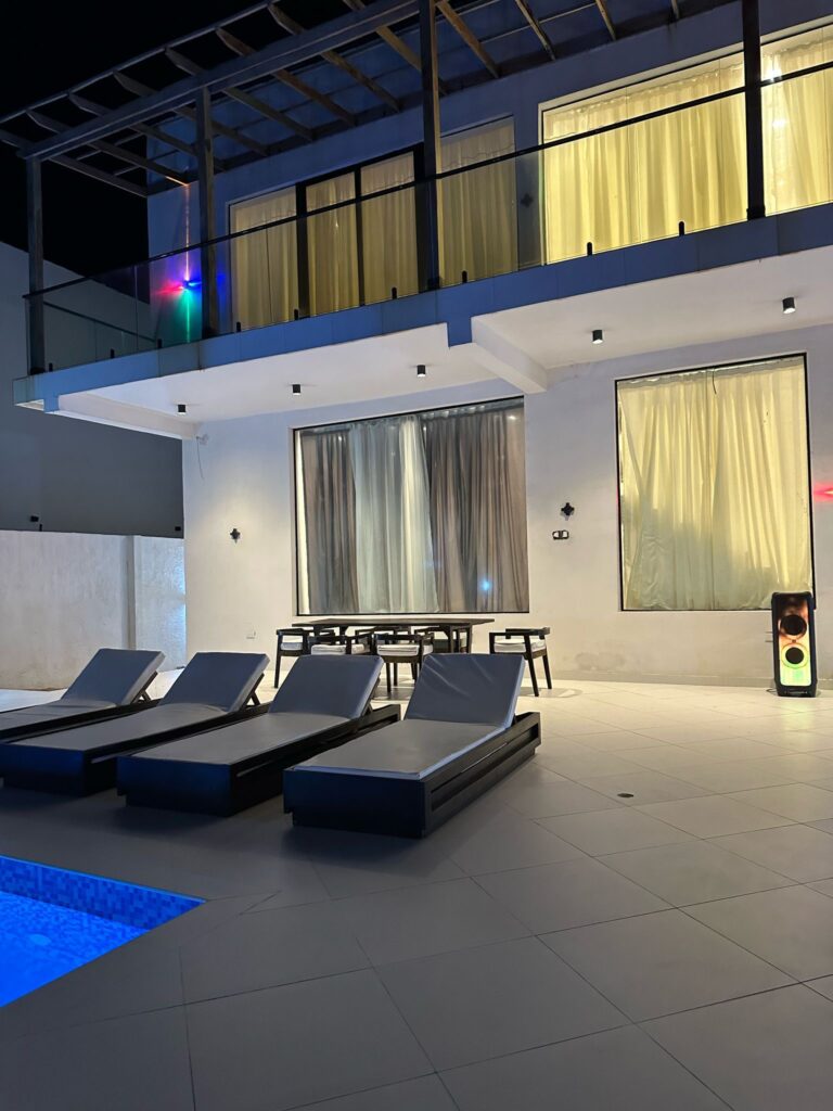 This is the top choice for celebrities and Gen Z who love the fountain and stylish beach pool party with water fun and games. Our 3-Bedroom Private Beach House – Ikaare Ilashe Beach, Lagos, combines both fun and escape choices for all ages. Its priced at ₦1,750,000 per night | Security Deposit: ₦100,000