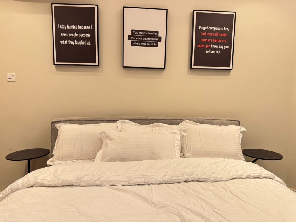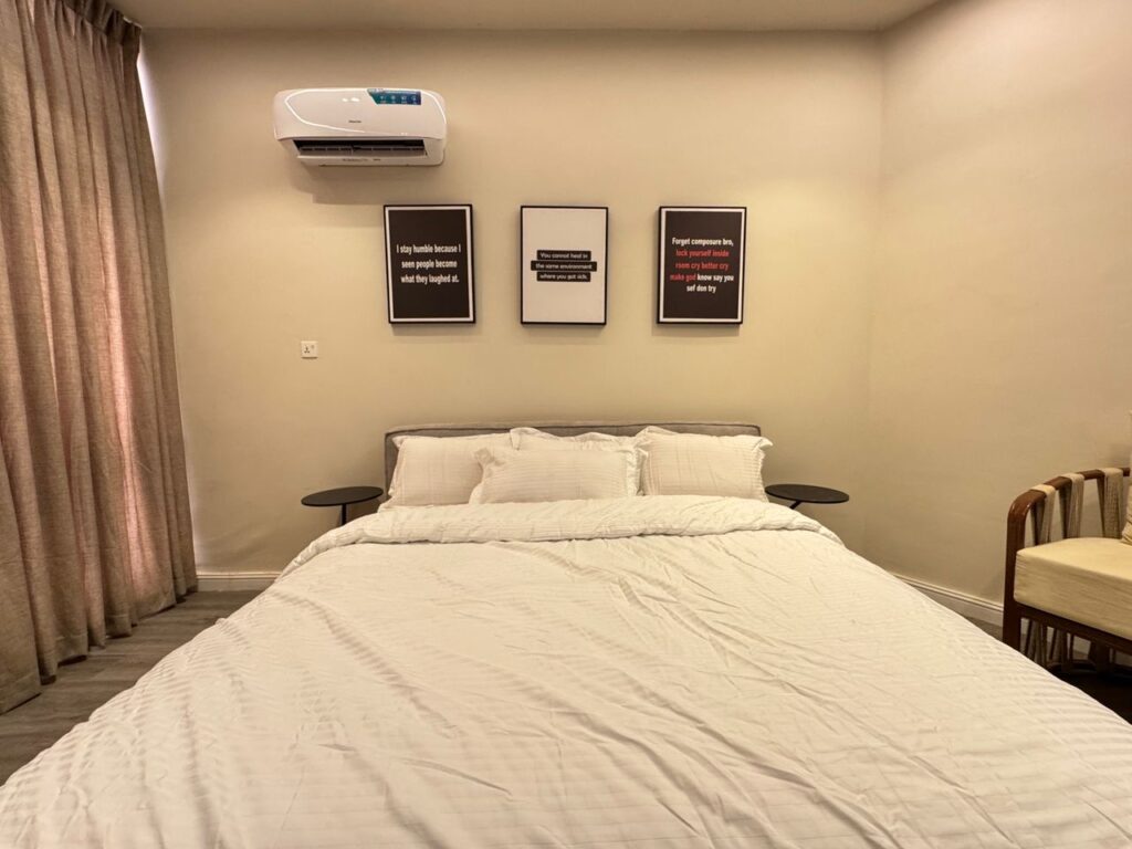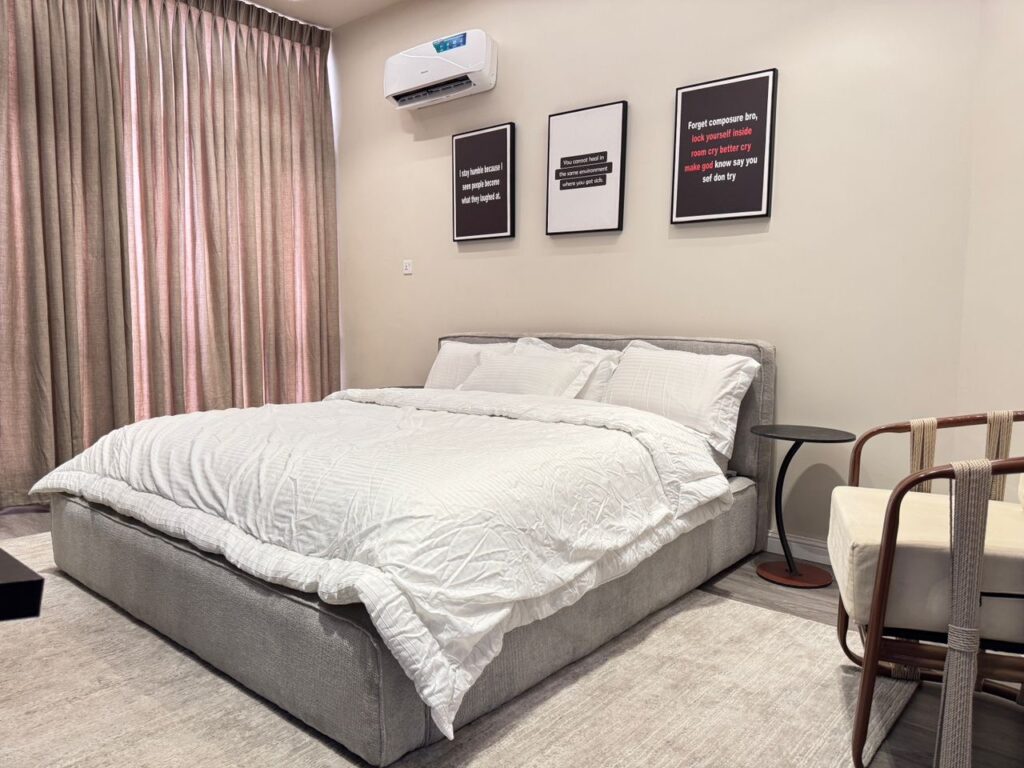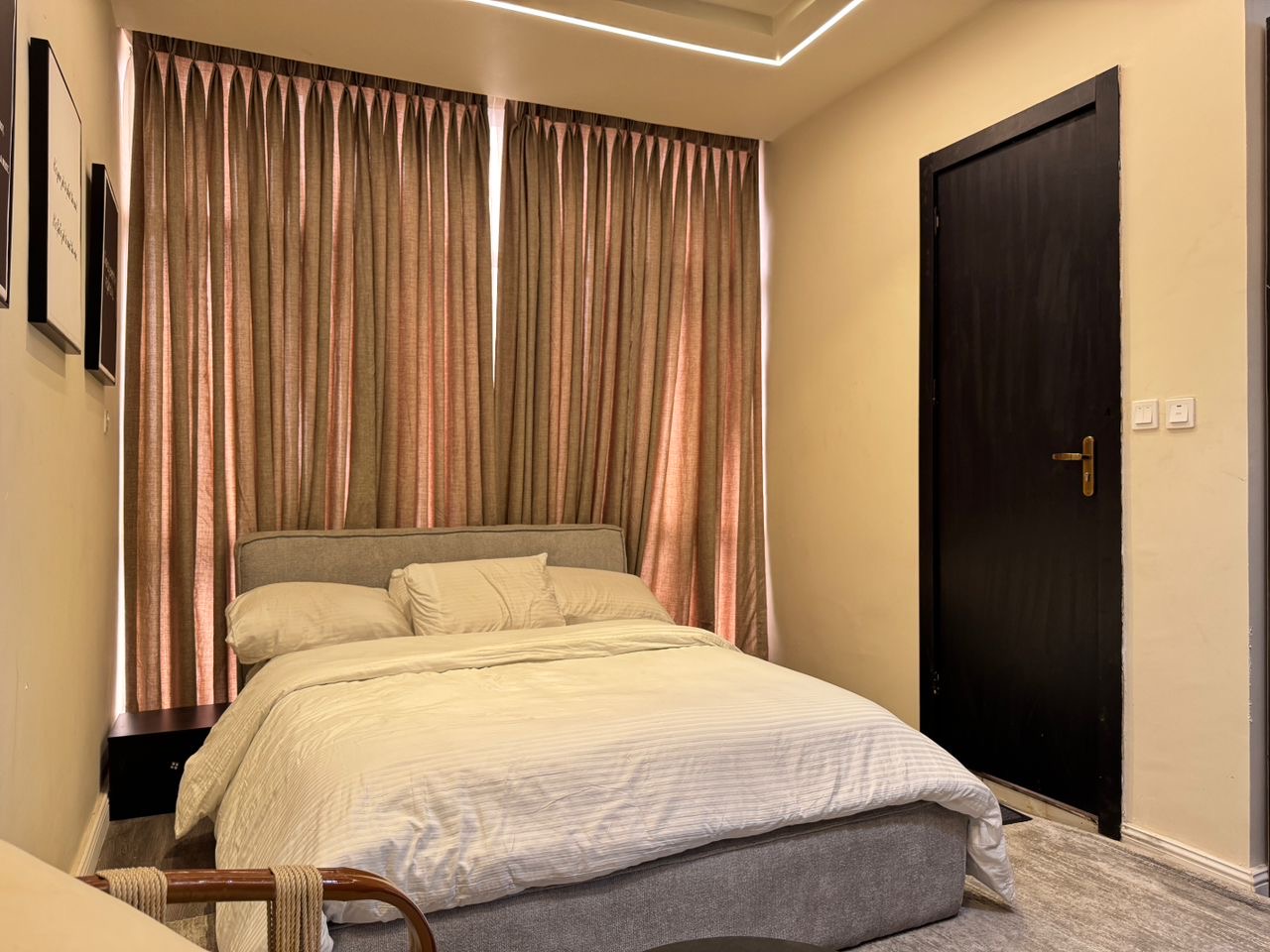 Looking at a getaway staycation or holiday away from home - Book our 3-bedroom en-suite bedrooms. This premium luxury apartment in Harwood Court, Lekki conservation, boasts of stunning finishes and art display, and aesthetics pleasing to the eyes. With High-speed WiFi, Smart TVs in all rooms, a lounge with an HD display fully equipped kitchen: microwave, toaster, kettle, cutlery, tableware - Walk-in closet, washing machine & dryer, central water heating 24/7 electricity, clean water, housekeeping service