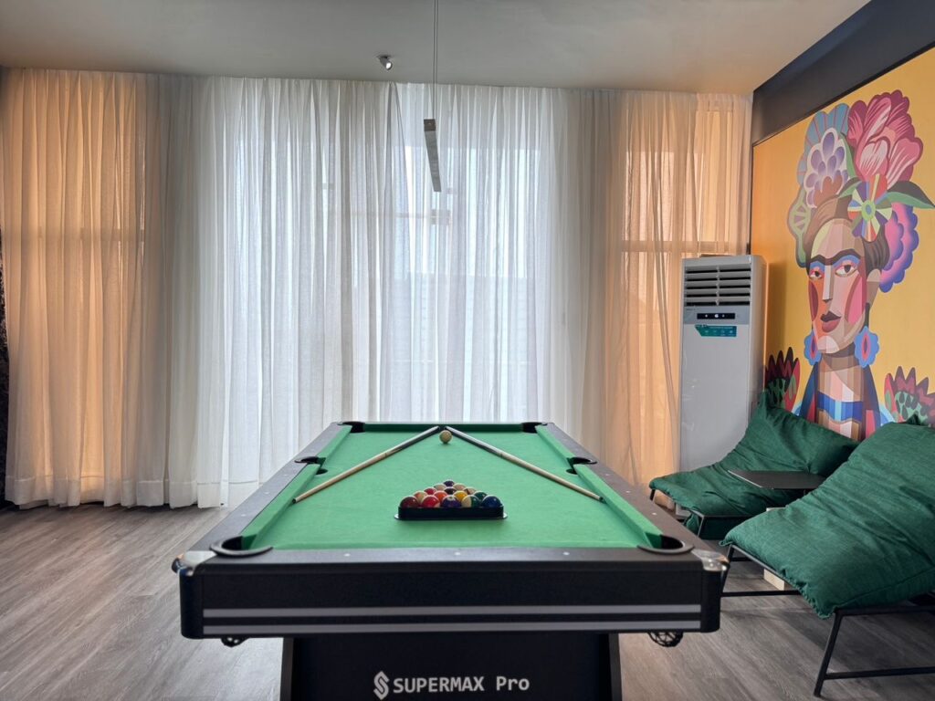 Snooker/pool table, table tennis/ping pong, air hockey table, PS5