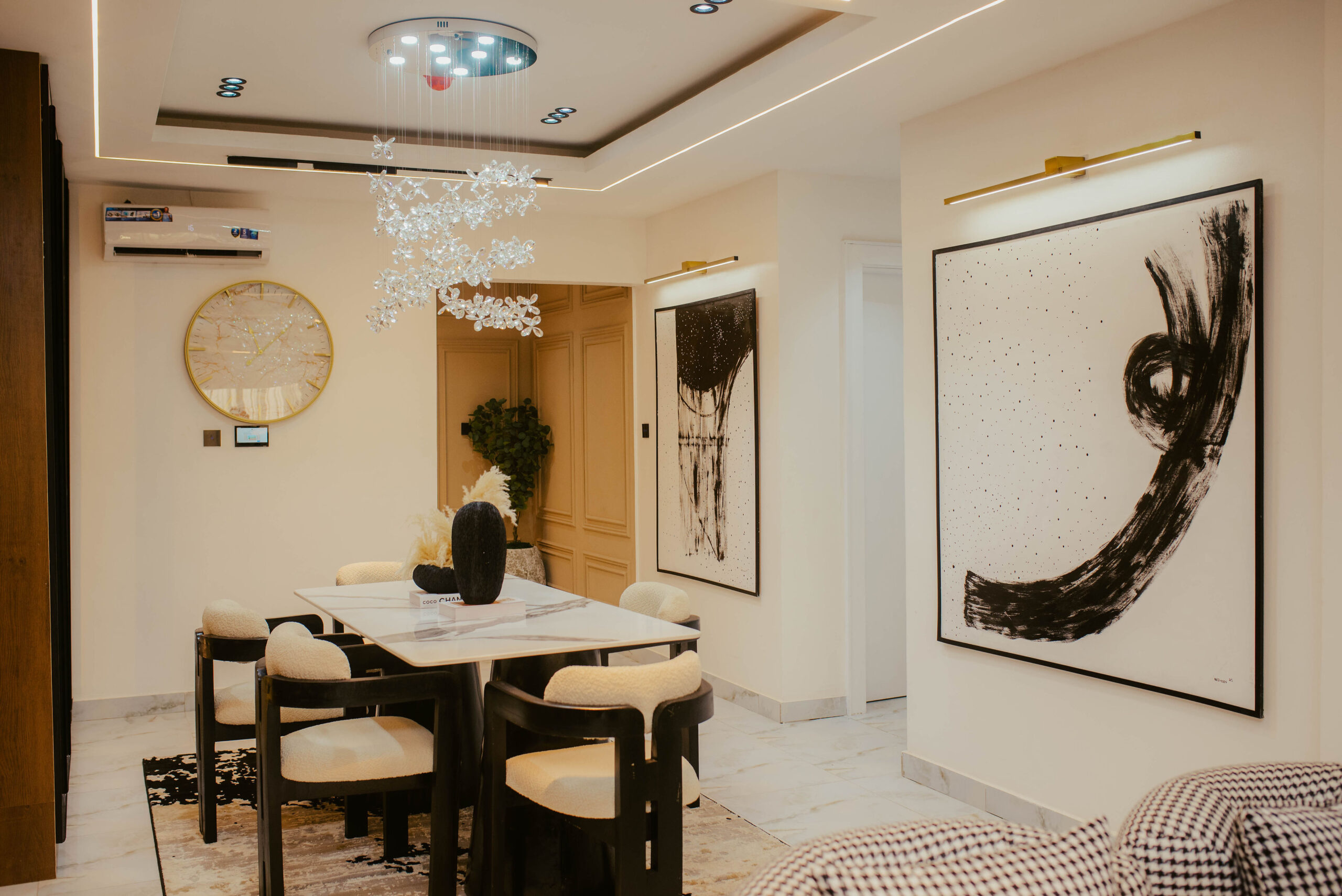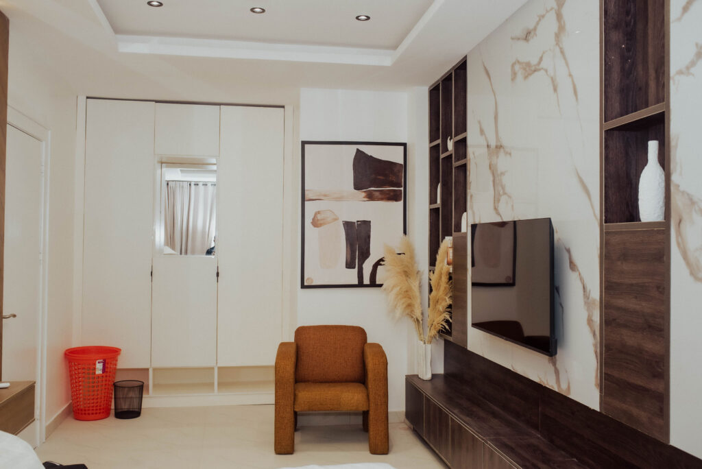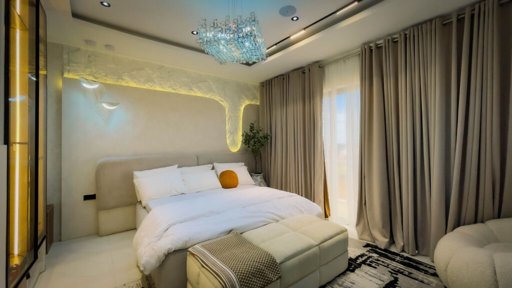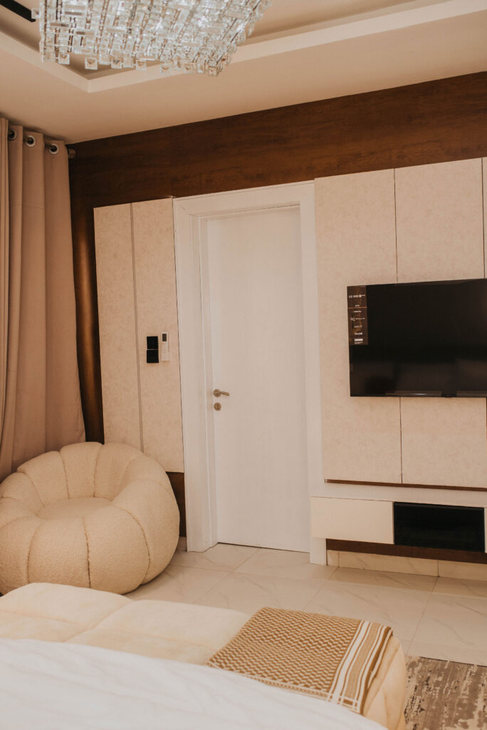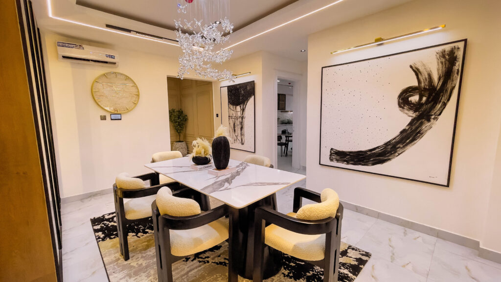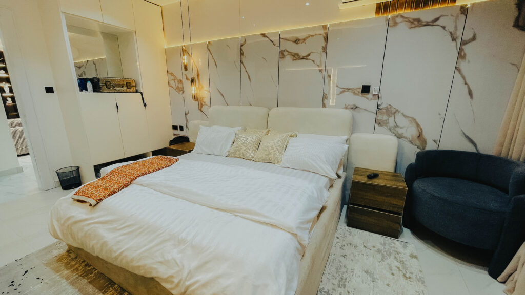 Looking at a getaway staycation or holiday away from home - Book our 3-bedroom penthouse all en-suite bedrooms. This premium luxury apartment at 7 Centrale Residence, boasts of stunning finishes and art display, and aesthetics pleasing to the eyes. With High-speed WiFi, Smart TVs in all rooms, a lounge with an HD display fully equipped kitchen: microwave, toaster, kettle, cutlery, tableware
