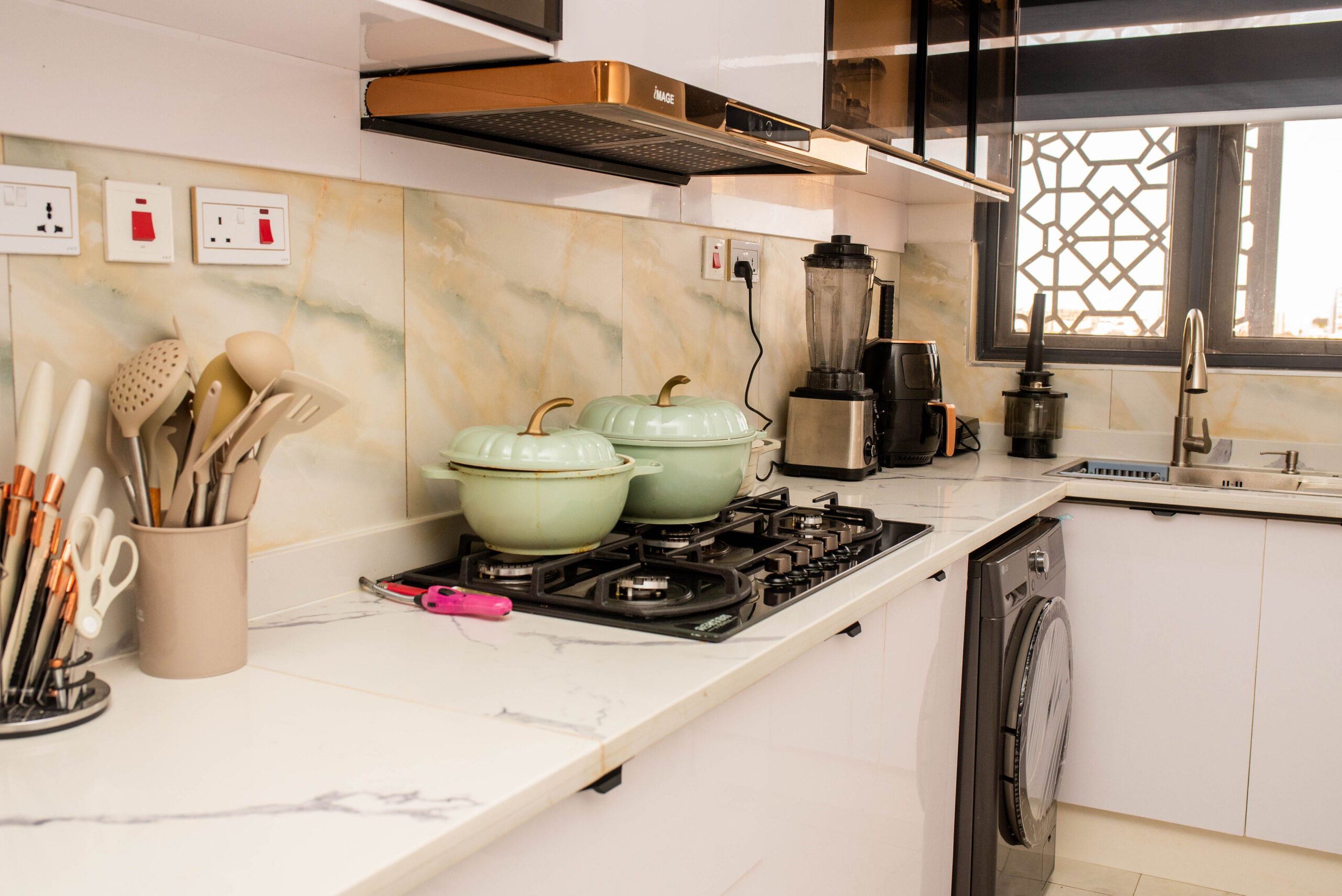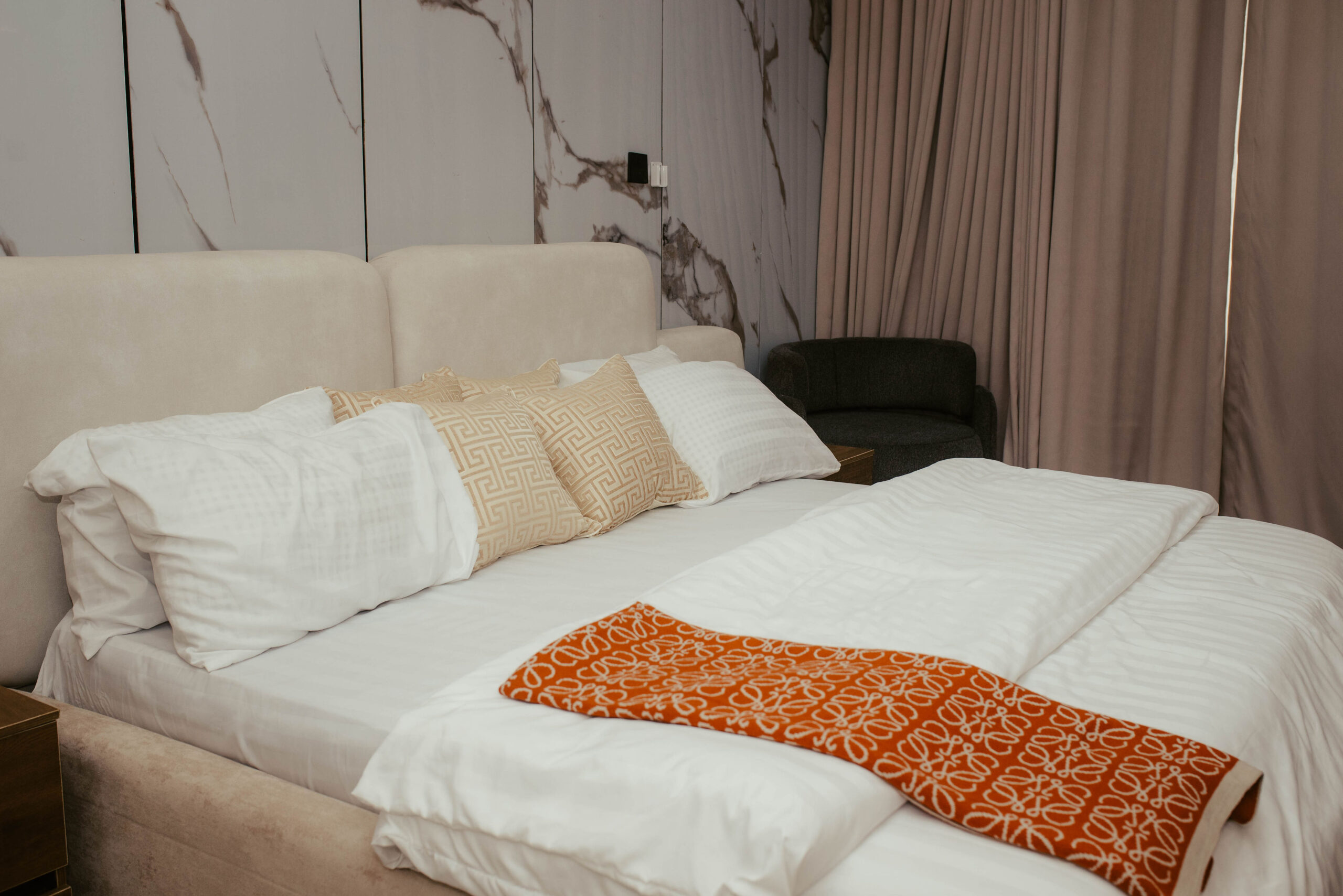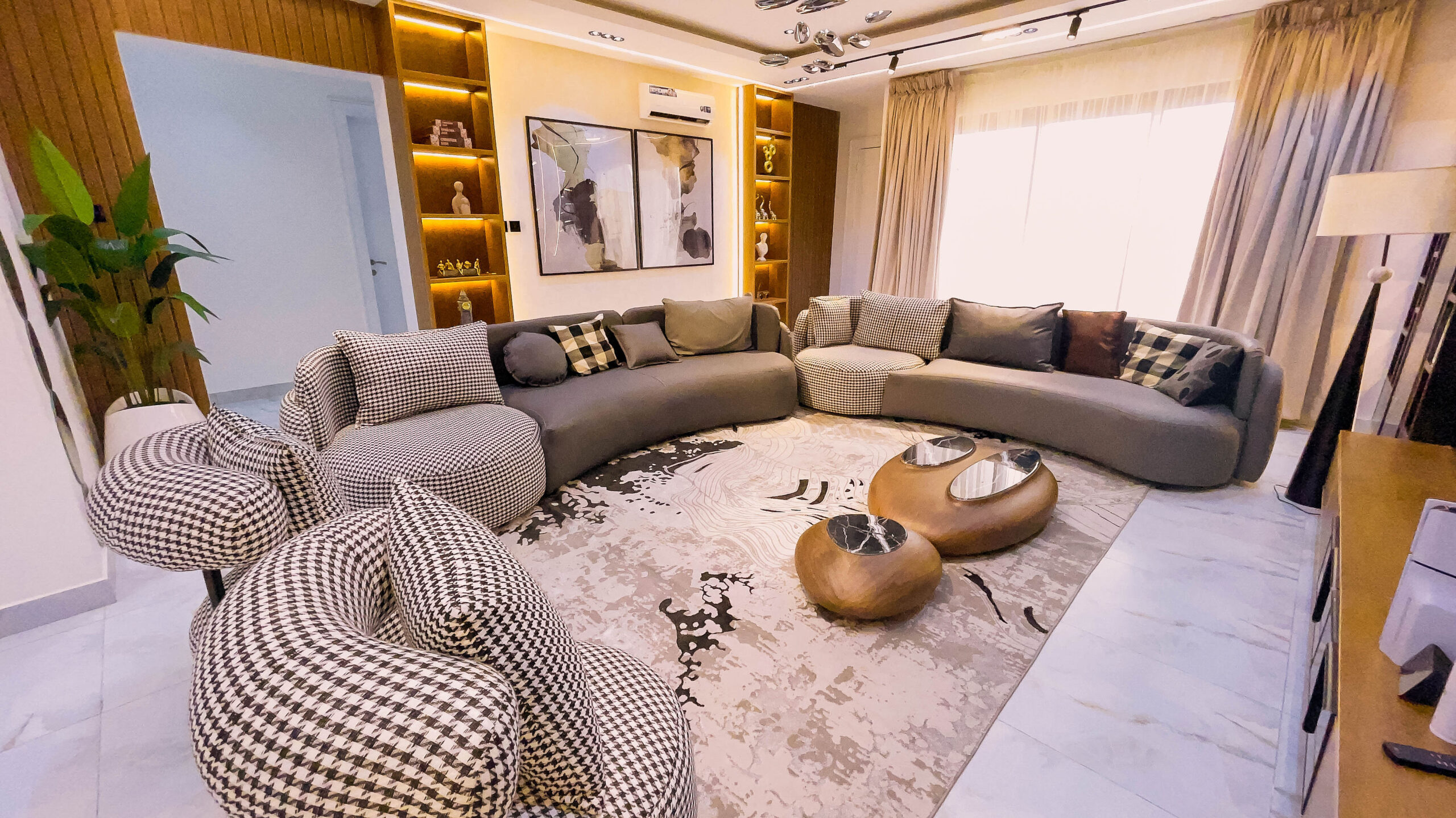 Looking at a getaway staycation or holiday away from home - Book our 3-bedroom penthouse all en-suite bedrooms. This premium luxury apartment at 7 Centrale Residence, boasts of stunning finishes and art display, and aesthetics pleasing to the eyes. With High-speed WiFi, Smart TVs in all rooms, a lounge with an HD display fully equipped kitchen: microwave, toaster, kettle, cutlery, tableware