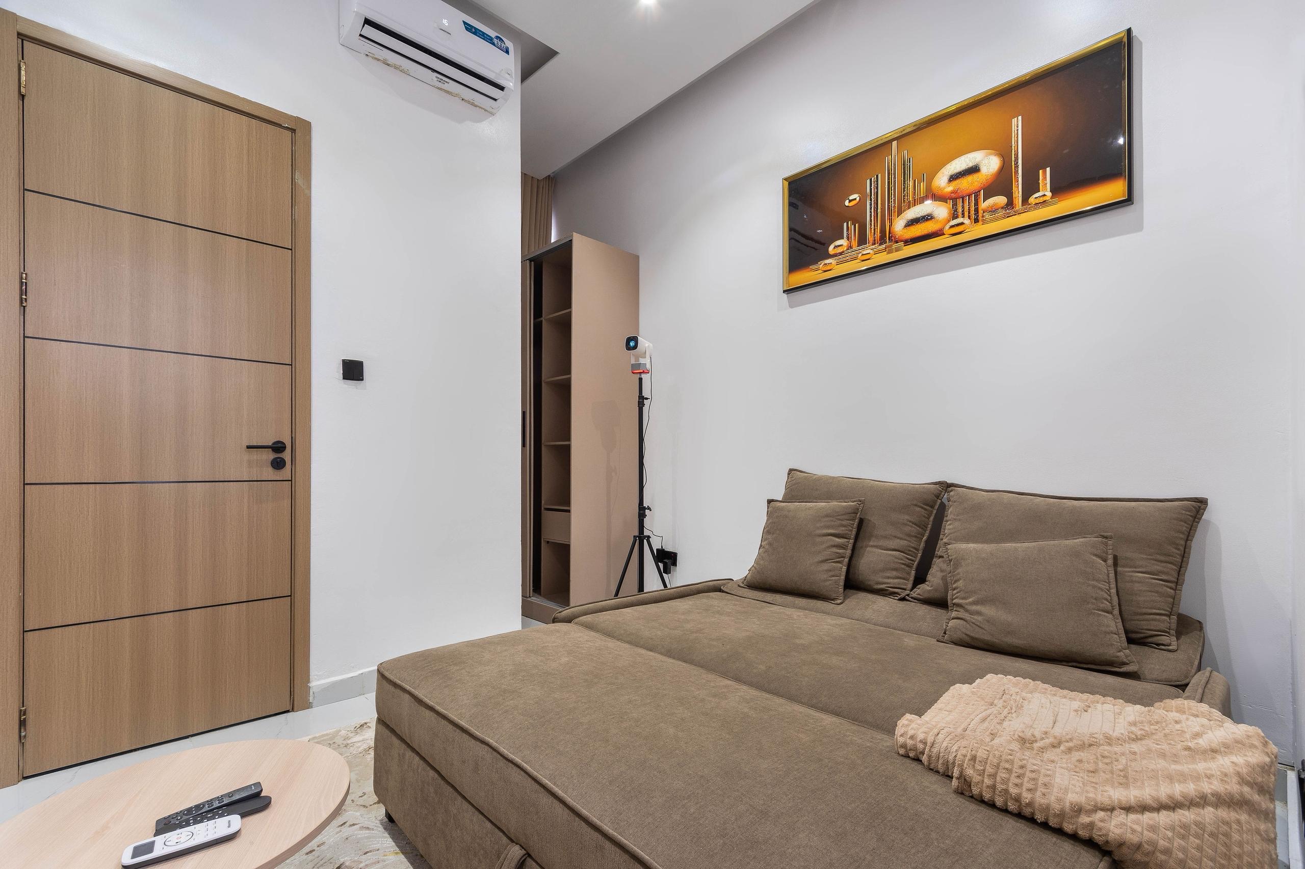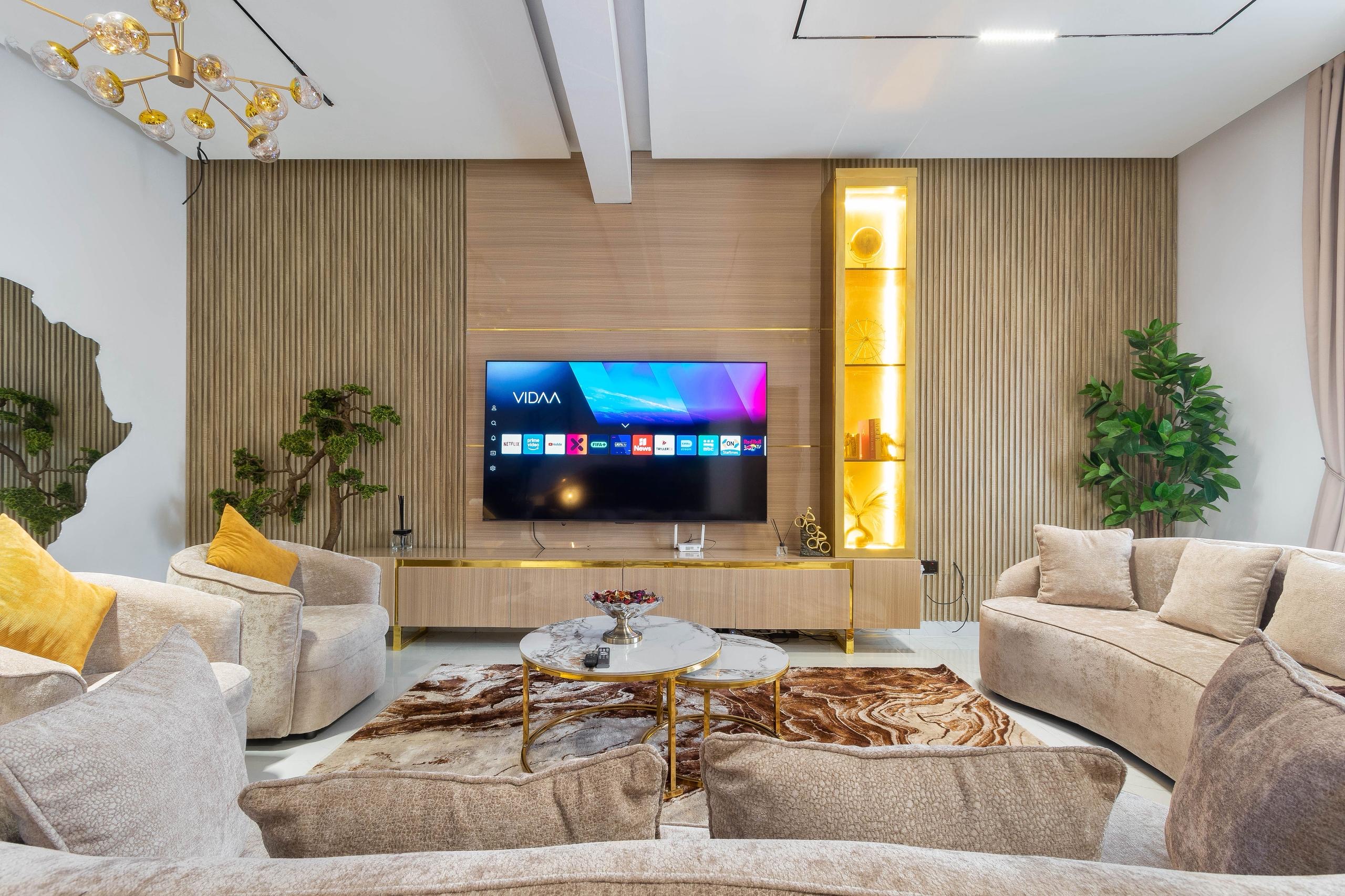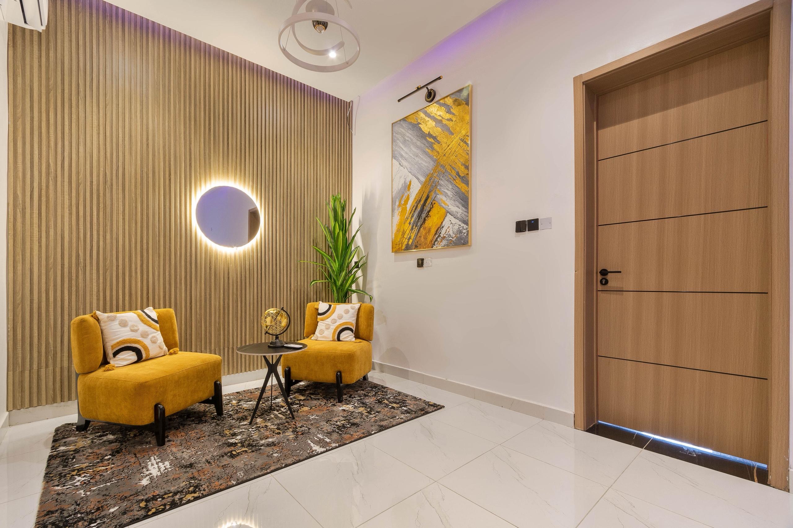 Looking at a getaway staycation or holiday away from home – Book our 3-bedroom Terrace Duplex with all en-suite bedrooms. This premium luxury apartment boasts stunning finishes and art display, and aesthetics pleasing to the eye. With High-speed WiFi, Smart TVs in all rooms, a lounge with an HD display fully equipped kitchen: microwave, toaster, kettle, cutlery, tableware. Walk-in closet, washing machine & dryer, central water heating, 24/7 electricity, clean water, housekeeping service.